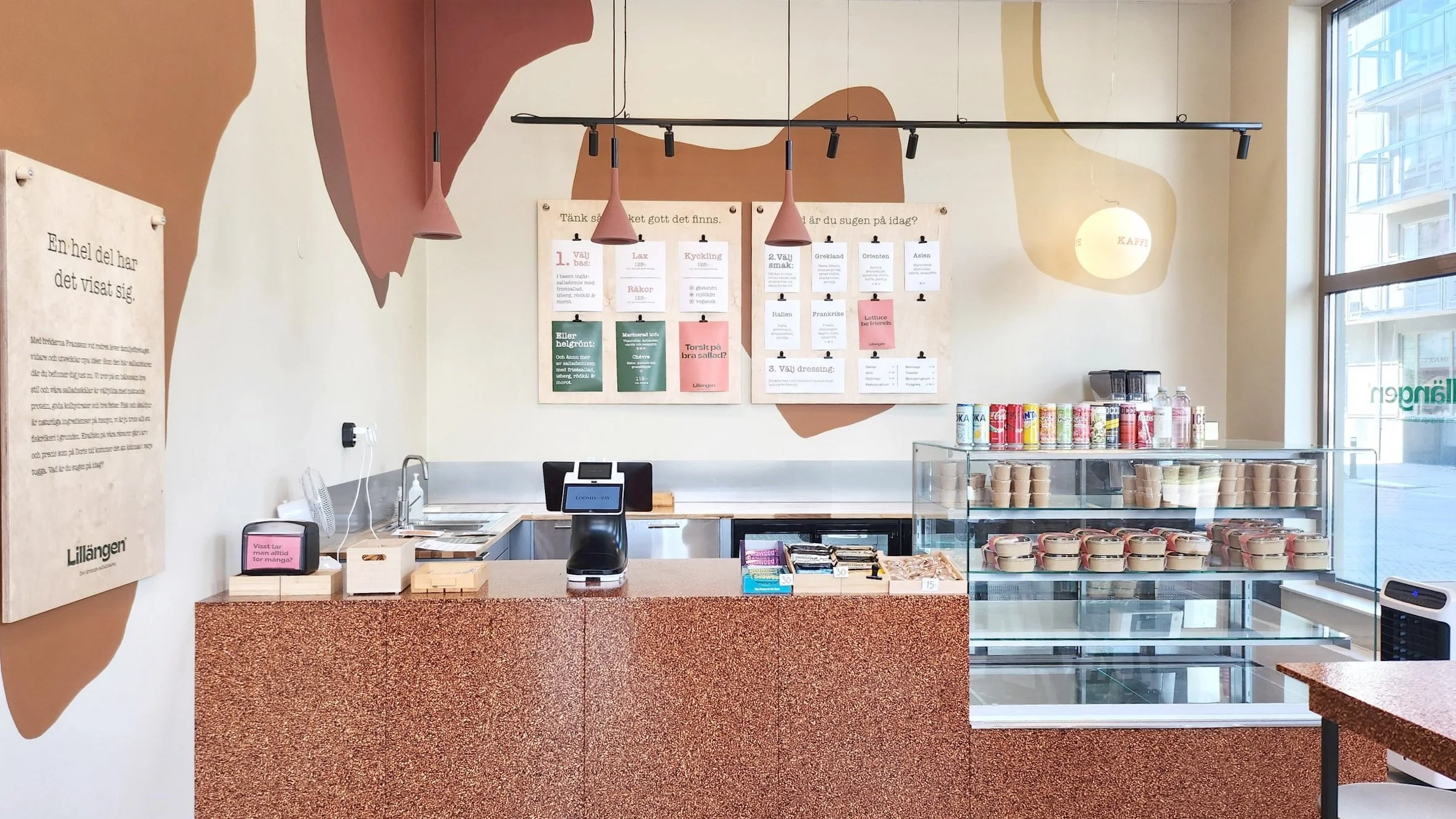Lillängen slog upp dörrarna till sin första salladsbar, i Karlstads inre hamn, våren 2024. En ny salladskedja som erbjuder krispiga och nyttiga sallader med avstamp i Lillängshamnens fiskerökeri. Inredningen är en fusion av traditionellt hantverk och nutidens puls. I materialval speglas just rökeri som hantverk, borden och salladsdisken är tillverkade utav skivmaterial med träflisspån likt det man använder vid rökningsprocessen. Färgskalan är dov med jordnära kulörer som plockats upp från den traditionella miljön kring hamnen med fiskebodar och sotiga ugnar.